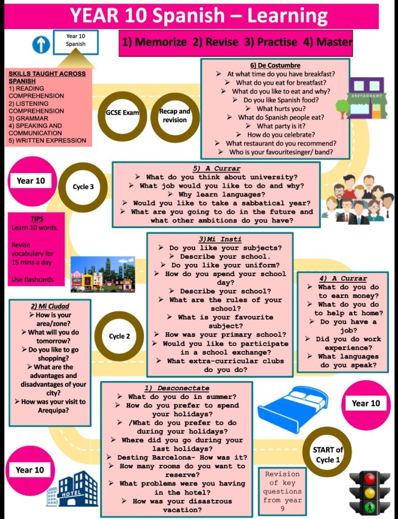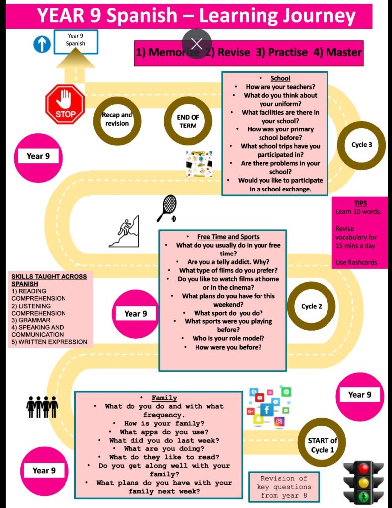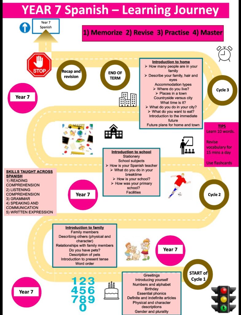 In Modern Foreign Languages, we want our students to leave school with a broad understanding of the world, which they will gain through studying themes in Hispanic/Francophone contexts and a set of strong life-long linguistic skills that are reinforced through grammatical knowledge.
