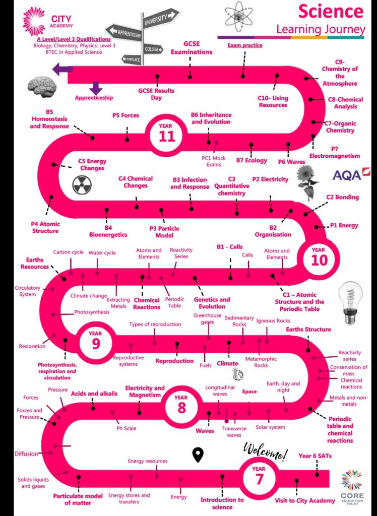 We want all City Academy students to leave with a love of the world around them and a passion for questioning the world they live in. All students should be able to articulate concepts using scientific language and be able to critique, question and challenge the decisions being taken affecting international communities. We aspire for all students to be sufficiently inspired and academically ready to use and take their City Academy Science education for further study.
